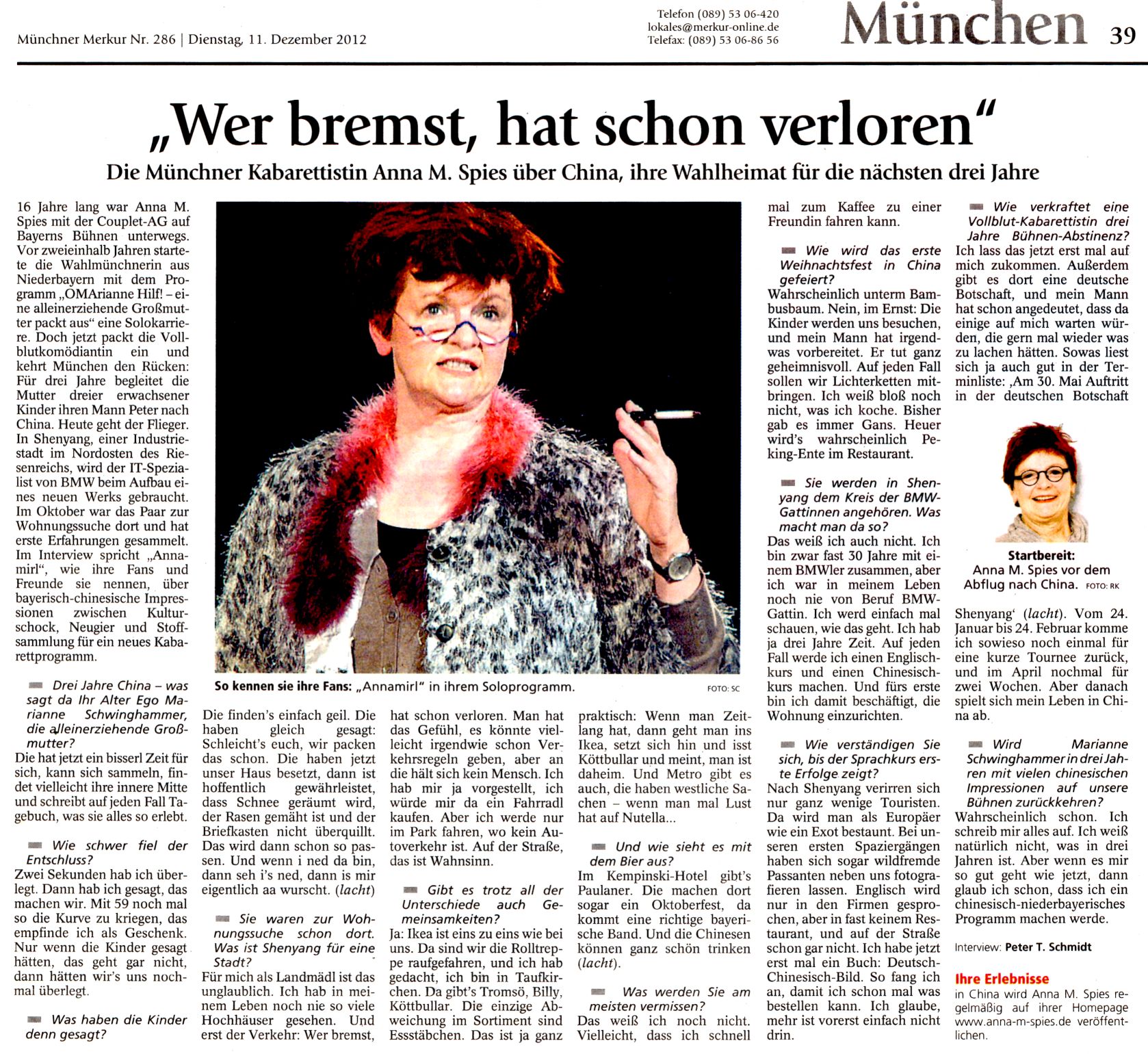 Vorheriges Bild Nächstes Bild Artikel im Münchner Merkur am 11. Dezember 2012 Münchner Merkur Nr. 268, 11. Dezember 2012 / Interview: Peter T. Schmidt